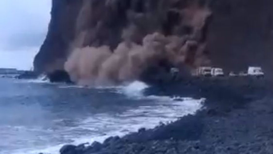 Sur les images de touristes et d'habitants, quelques pierres, puis des centaines de m3 de roche dégringolent de cette falaise de Valle Gran Rey, sur la côte de Gomera, l'une des îles de l'archipel atlantique. Dans un vacarme assourdissant, soulevant un nuage de poussière magistral et déclenchant une série de vagues.