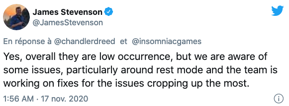 Insomniac Games, au courant des problèmes, travaille déjà sur les correctifs.