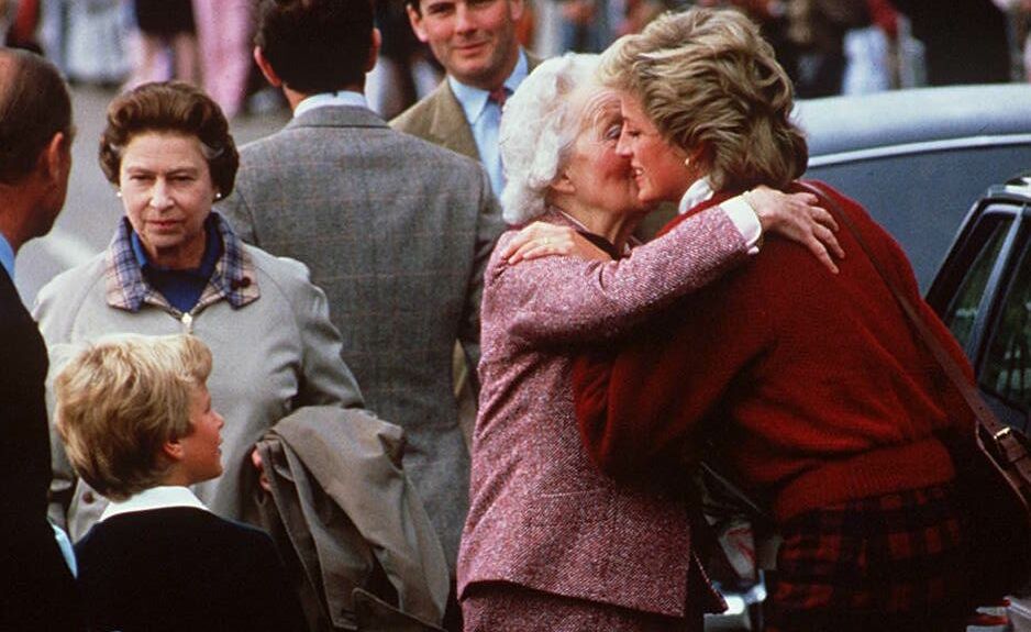 Lady Diana embrasse sa grand-mère Lady Fermoy.