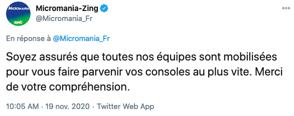 Et pourtant, Micromania avait pris les devants dès la fin du mois d'octobre pour assurer les livraisons à temps. Mais le Covid-19 est passé par là et avec le reconfinement, l'enseigne est contrainte d'accuser un retard dans les livraisons de certaines précommandes.
