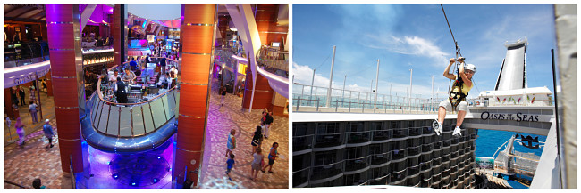 L'Oasis of the seas a révolutionné les croisières avec son concept de «voisinage». Cette innovation divise le navire en 7 zones thématiques conçues pour que les passagers puissent vivre des expériences correspondant à leurs goûts, leurs préférences ou leur humeur. Les quartiers qui se détachent de l'Oasis sont la promenade royale; qui contient le premier bar mobile construit sur un bateau pour que ses passagers puissent prendre un cocktail pendant leur déplacement, ainsi que sa piscine et son espace sportif; qui intègre la première tyrolienne en mer à une hauteur de neuf ponts.