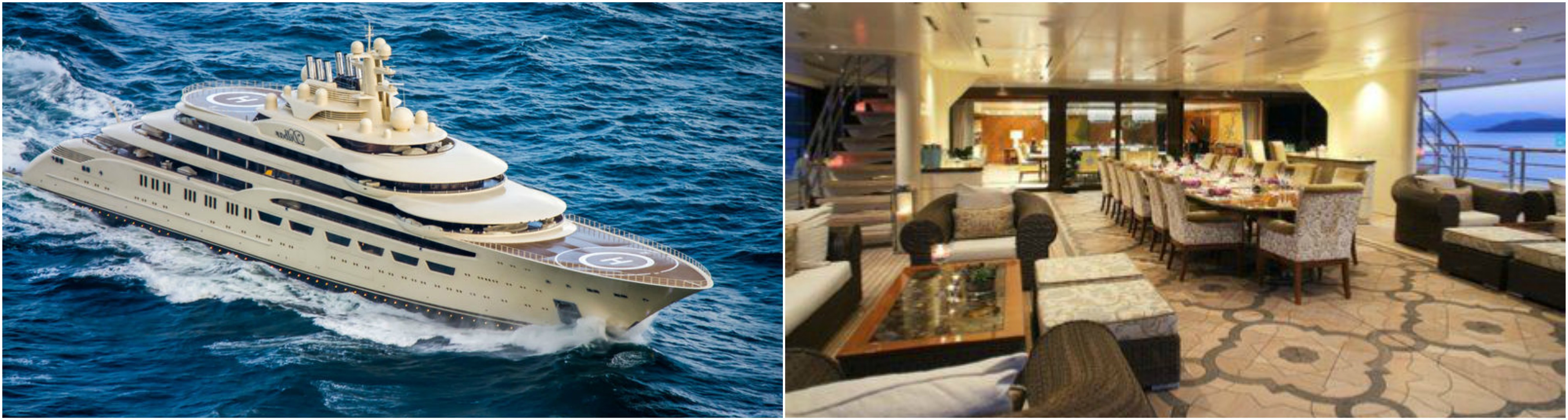 Le quatrième sur notre liste est le Serene, un méga-yacht de rêve d'une valeur de quelque 485 millions d'euros qui abrite le tableau le plus cher du monde : le "Salvator Mundi" de Léonard de Vinci. Il est loué pour environ 5 millions d'euros par semaine et appartient actuellement à Mohamed Bin Salman, prince d'Arabie Saoudite.