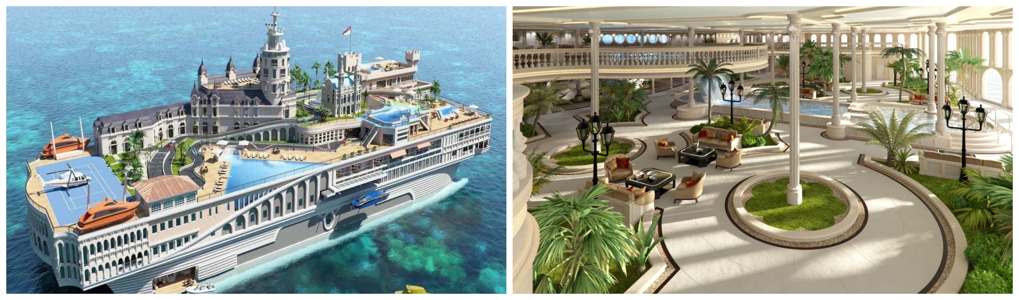 Le constructeur chargé de sa conception est Yacht Islands Design, un chantier naval spécialisé dans la conception de yacht de luxe très originaux, comme on peut le voir sur les 155 mètres de longueur de ce méga-yacht. On ne sait toujours pas qui sera le propriétaire, ni quand il sera terminé. Ce qui est sûr c'est que son architecture est inspirée de plusieurs bâtiments monégasques et, tout comme dans la ville, on peut trouver l'hôtel de Paris, le casino, le Palais Grimaldi, l'hôtel Loews, le port Hercule et le club La Rascasse. Malgré le poids de tous ces détails, il a une vitesse de croisière maximale de 15 noeuds.