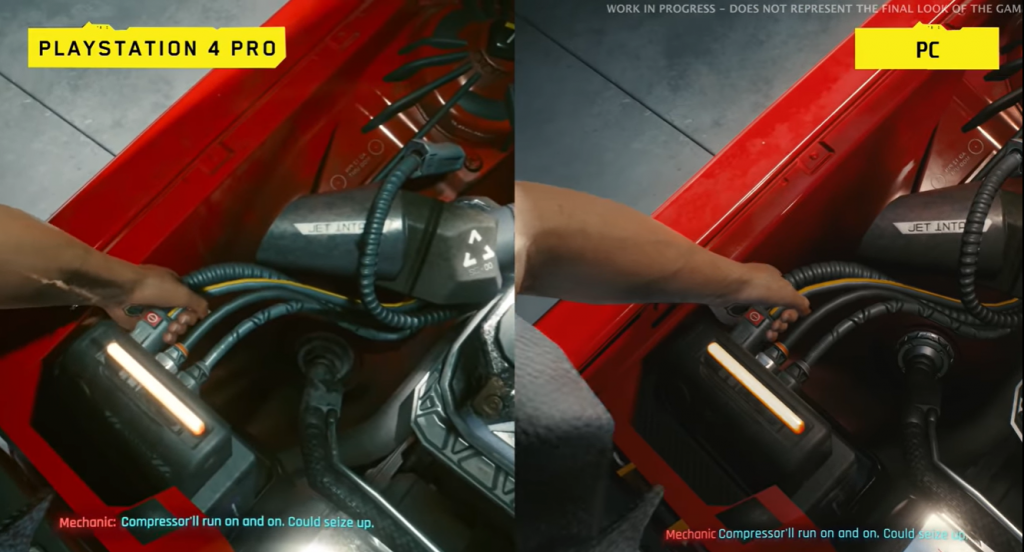 Malgré moult reports, Cyberpunk 2077 doit bel et bien sortir le 10 décembre. Dernièrement, le studio polonais retrouvé derrière le titre a mis en ligne de nouvelles vidéos de gameplay. On y retrouve un gameplay obtenu sur PS4 Pro, qui a pu être comparé à des images obtenues sur PC quelques mois auparavant. Un gameplay similaire qui permet de poser les yeux sur les différences entre les deux versions. Bien évidemment, la version PC est plus impressionnante que la version PS4 Pro, grâce à un matériel plus onéreux.