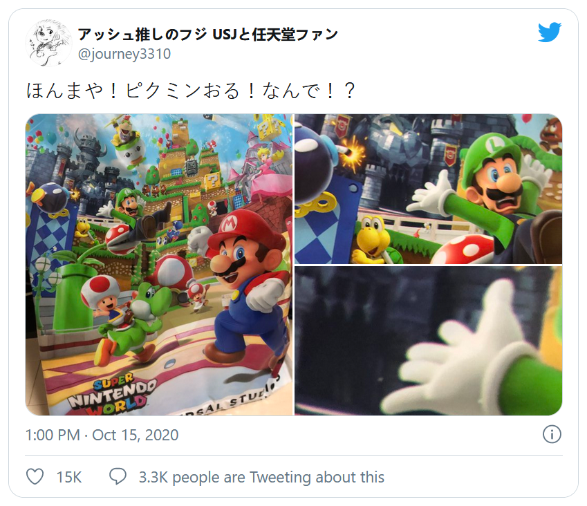 Selon les dernières rumeurs, Mario et ses amis ne devraient pas être les seuls représentés dans la zone du parc. En effet, a été aperçu un tout petit Pikmin qui laisse rêveur...