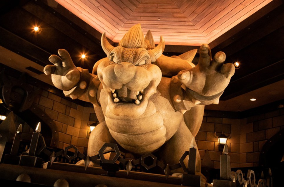 Il y a quelques jours nous vous proposions de découvrir des photos aériennes du Super Nintendo World à Universal Studios Japon. Si vous ne le saviez pas, un parc d'attractions entièrement dédié à l'univers de Mario va bientôt ouvrir à Osaka. Vous pourrez y retrouver le château de Peach, le château de Bowser, des blocs jaunes, des tuyaux et même une piste de Mario Kart. Après les photos aériennes, place aujourd'hui à une vidéo et des photos à l'intérieur des attractions. On peut découvrir une statue en pierre géante de Bowser, un coin avec tous les trophées Mario Kart, une attraction Mario Kart, mais aussi un grand escalier.