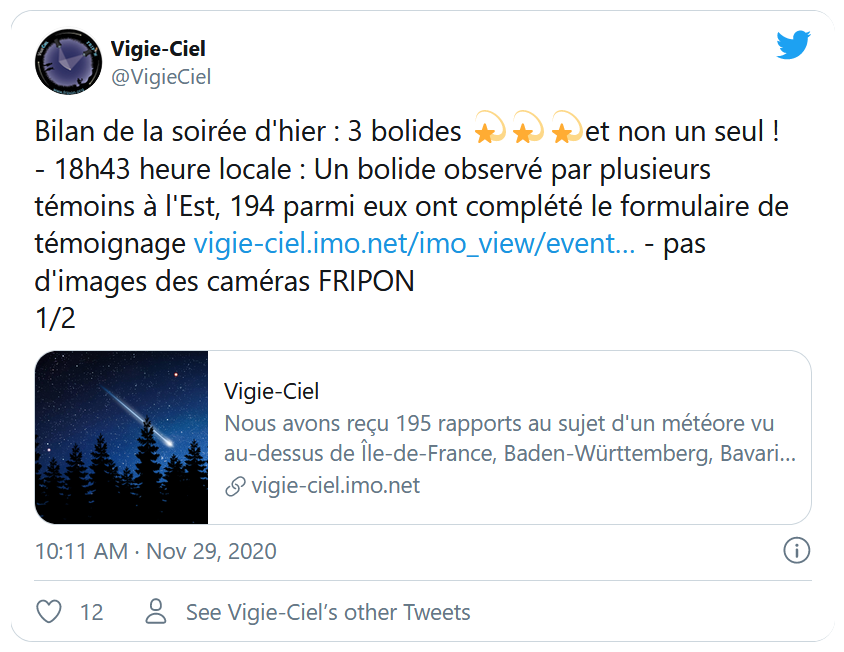 « Ce qui a été observé, c'est l'entrée d'un objet dans notre atmosphère. En général, il s'agit d'un fragment d'astéroïde. Les plus gros donnent lieu à des météorites au sol », a annoncé Asma Steinhausser, coordinatrice des programmes de sciences participatives à Vigie-Ciel.