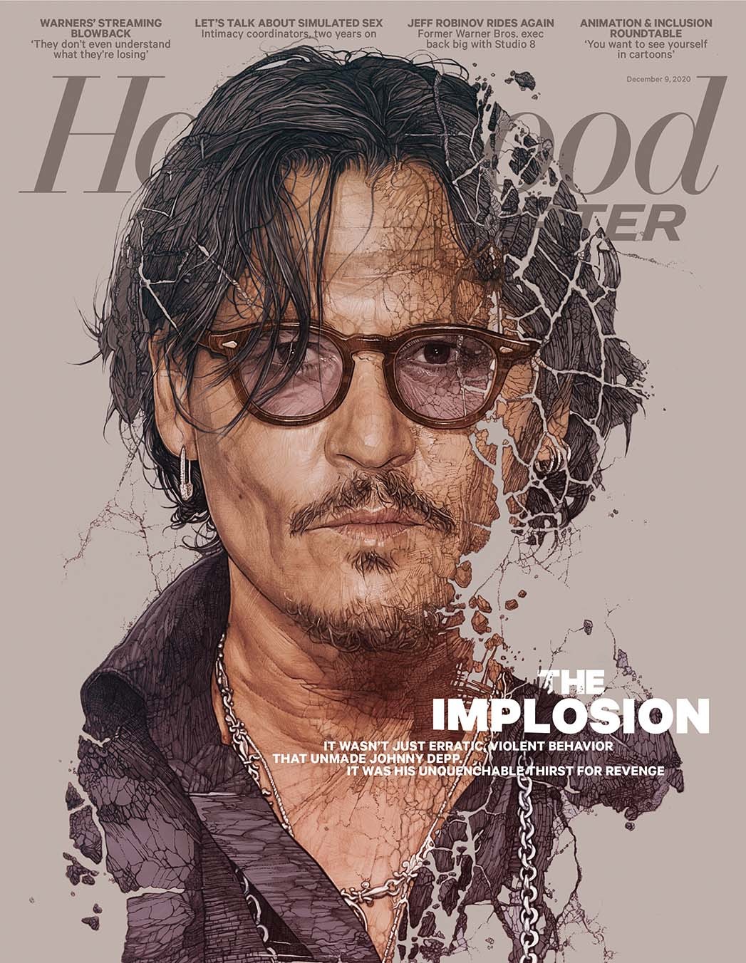 Quelques semaines après que l'acteur américain ait perdu son procès contre le tabloïd britanniqueThe Sun, qui l'avait décrit comme un "wife beater" (un frappeur d'épouse), Johnny Depp est à la une du célèbre média The Hollywood Reporter. Sous une photo du visage de l'acteur en train de se déchirer, on peut lire :