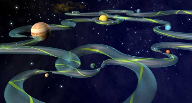 Nous connaissons l'existence d'un espèce de "réseau d'autoroutes" permettant de traverser le système solaire depuis quelques temps déjà. Dans les années 1970, les scientifiques avaient en effet déjà mis en évidence ces "courants de gravité", et la NASA avait publié un article à ce sujet en 2002. Il existe ainsi des sortes de tubes qui permettent, un peu comme le font nos courants marins ou nos courants aériens, de transporter des objets plus rapidement que s'ils empruntaient un autre chemin.