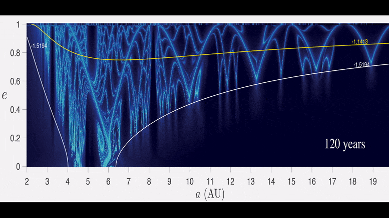 Les structures en arc les plus visibles sont liées à Jupiter et aux fortes forces gravitationnelles qu'elle exerce. Quand des objets célestes comme des comètes ou bien des astéroïdes s'y aventurent, cela leur permet de se déplacer beaucoup plus rapidement. Mais comment est-on parvenu à un tel résultat ? Il a fallu, pour cela, rassembler des données numériques sur des millions d'orbites dans notre système solaire, et calculer comment ces orbites s'intègrent dans les variétés spatiales déjà connues. Un travail titanesque !