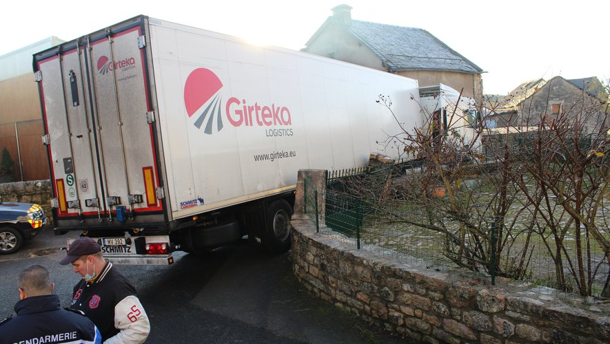 Un semi-remorque s'est retrouvé coincé dans la rue de l'Église à Massegros en Lozère.