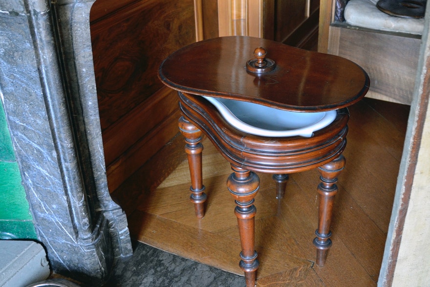 Souvent munies d'accoudoirs, élégamment conçues, rembourrées et recouvertes de tissu ou de cuir, celles-ci pouvaient prendre les formes les plus diverses et un vase de nuit en faïence pouvait être placé à l'intérieur. On dissimilait aussi fréquemment les pots de chambre dans des coffres de forme rectangulaire munis d'un couvercle, dont la véritable fonction restait souvent dissimulée par ce qui semblait être une commode.