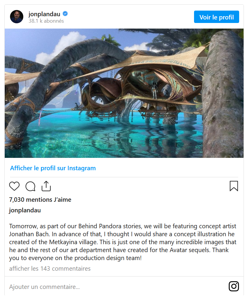 Ce n'est qu'une des nombreuses images incroyables que lui (Jonathan Bach) et le reste de notre département artistique ont créées pour les suites d'Avatar. Merci à tous ceux qui ont participé à la conception et à la production !