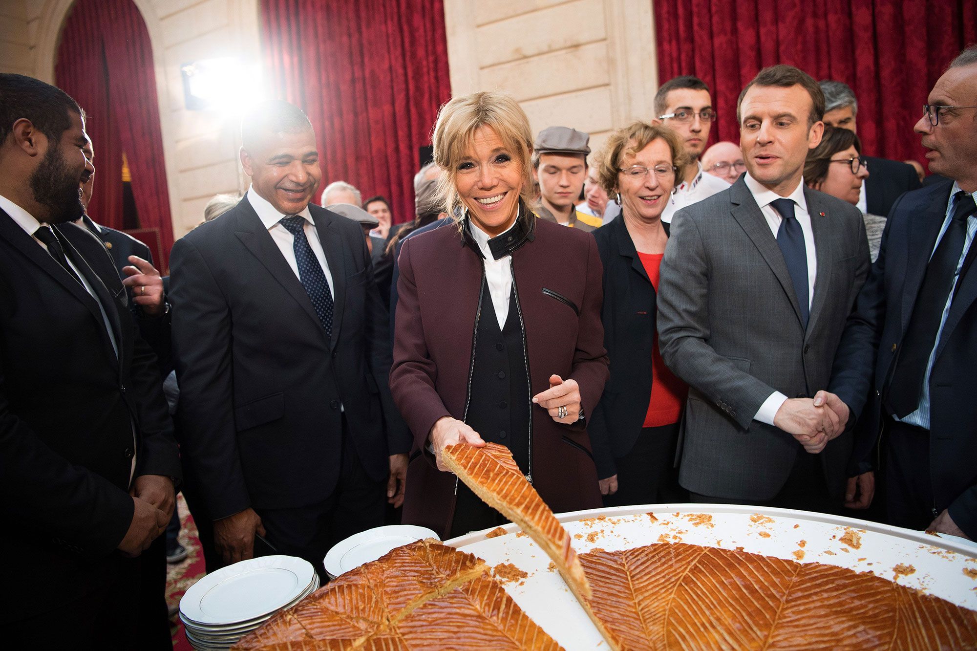 Cela n'a certainement pas empêché le couple présidentiel et leurs collaborateurs de se régaler. Cette année, Jean-Yves Boullier, un boulanger du 15e arrondissement de Paris, a confectionné la galette des rois géante de 1,20 mètres. La création, faite de beurre de Normandie et de farine d'Île-de-France avait été transmise à Emmanuel Macron.