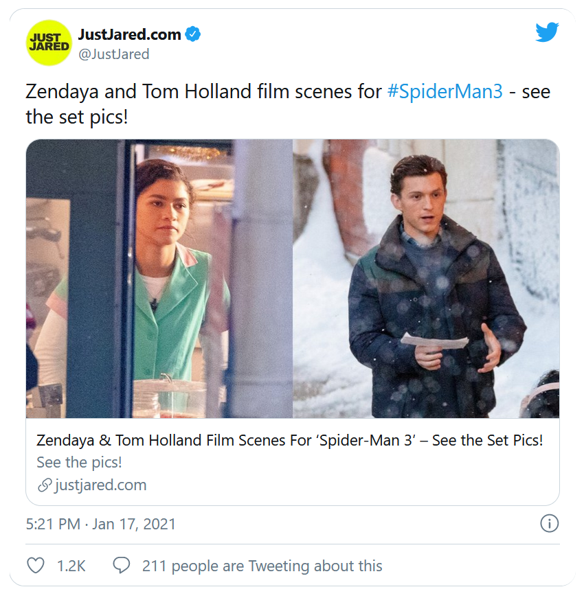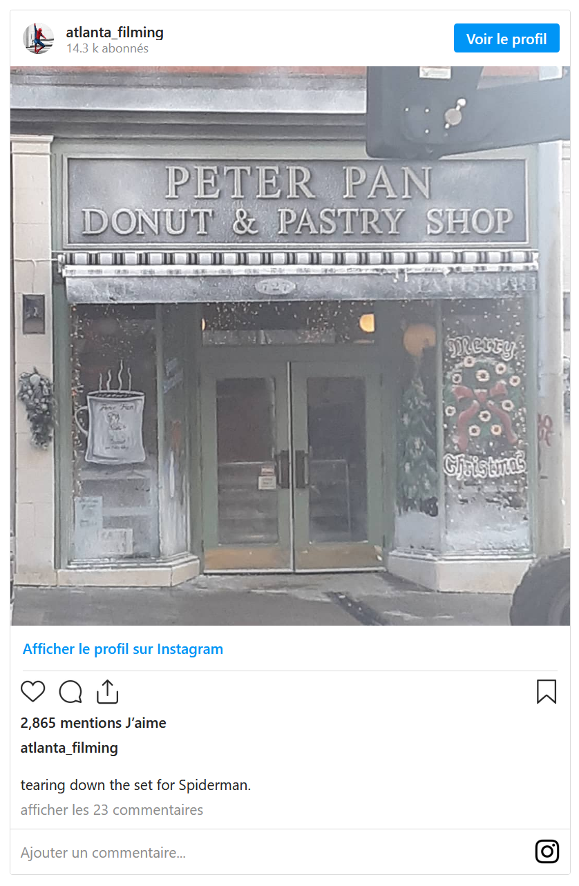 Les premières photographies prises sur les lieux de tournage révèlent que Peter Parker (Tom Holland) rendra visite à Michelle Jones (Zendaya) au travail durant la saison des vacances d'hiver. Nos confrères de chez Just Jared ont en effet aperçu Tom Holland et Zendaya dans un magasin de beignets :