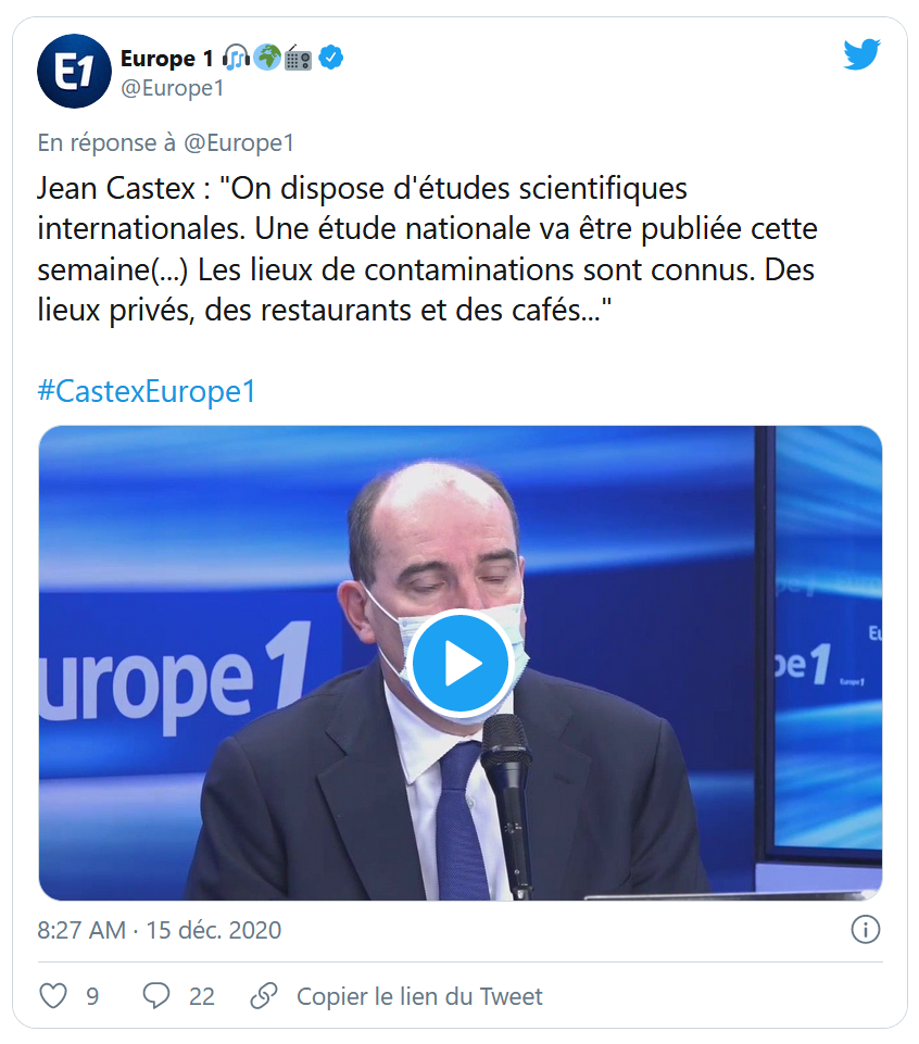 Les premiers résultats de l'étude ComCor, publiés le 17 décembre dernier avaient d'ailleurs permis à Jean Castex de “confirmer” que la fermeture des restaurants et des bars était “nécessaire”.