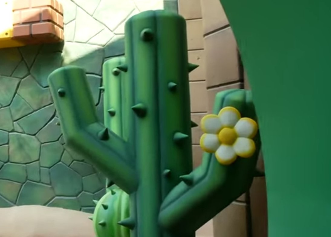 Créés spécifiquement pour ce mod, ces cactus à la forme si particulière sont toutefois présents dans le parc. En effectuant une simple recherche Google, on se rend compte que les cactus sont visibles aisément. Celui, celle ou ceux en charge de la décoration de cette zone du parc ont sans doute commis une erreur honnête. Une anecdote amusante, d'autant que Nintendo a tendance à resserrer les vis quand il s'agit de ses licences phares. Nombreux ont été les jeux créés par des fans à disparaître officiellement de la toile après un mail convaincant de Nintendo ou de ses avocats.