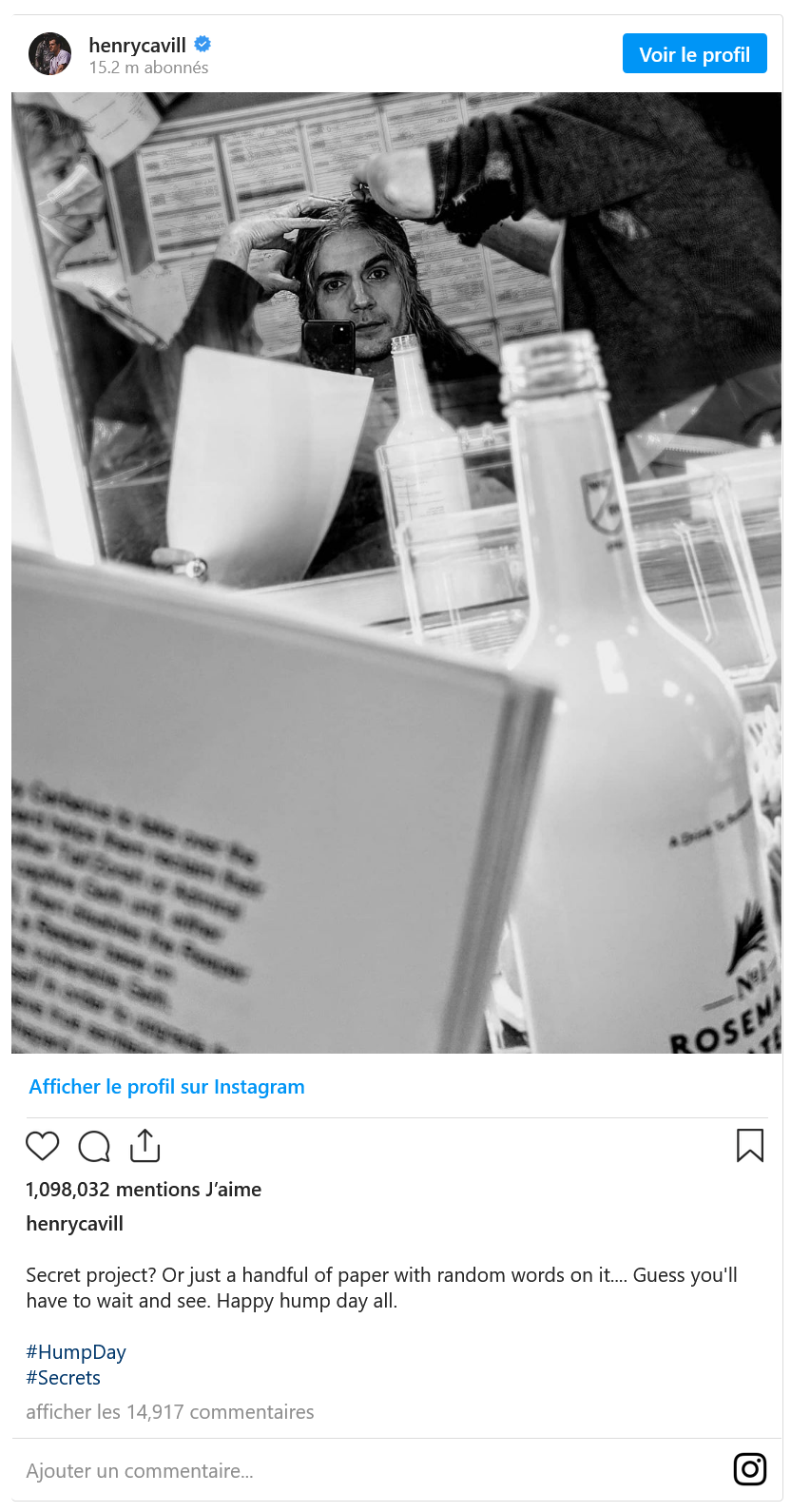 Henry Cavill est fan de jeux vidéo. Amoureux de la licence The Witcher, il est parvenu à réaliser tout rêve de fan en incarnant Geralt de Riv dans l'adaptation en série des romans d'Andrzej Sapkowski pour le compte de Netflix. Mais l'acteur britannique pourrait bien être à l'œuvre dans une nouvelle adaptation de jeu vidéo en série ou en film. Sur son compte Instagram, Cavill a récemment publié une photo de lui face à un miroir, script en main, avec l'indication "Projet secret ? Ou simplement une poignée de feuilles avec des mots aléatoires dessus... J'imagine que vous allez devoir attendre pour voir. Joyeux mercredi à tous".
