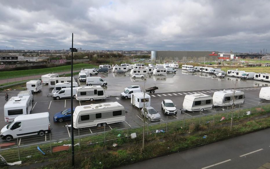 La peur du virus est palpable sur ce parking temporairement occupé par quelques dizaines de caravanes.