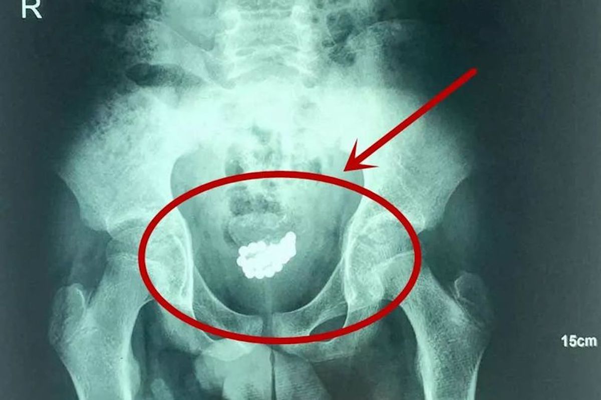 Cela faisait trois mois que l'adolescent vivait avec ces billes magnétiques coincées dans son pénis après les avoir insérées dans son urètre uniquement "par curiosité" comme l'explique l'urologue qui l'a pris en charge. Trop gêné pour aller consulter, il a préféré vivre avec malgré de fortes douleurs abdominales.