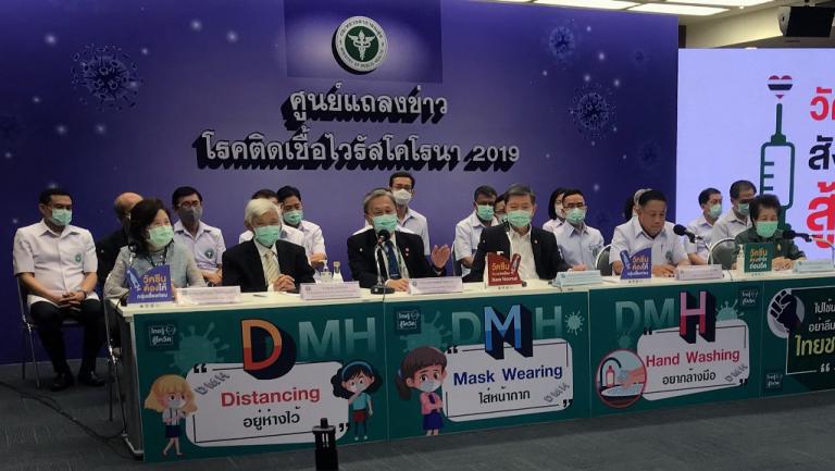 Conférence de presse du comité thaïlandais en charge de la campagne de vaccination contre le Covid-19, à Bangkok, la capitale de la Thaïlande, le 12 mars 2021.
