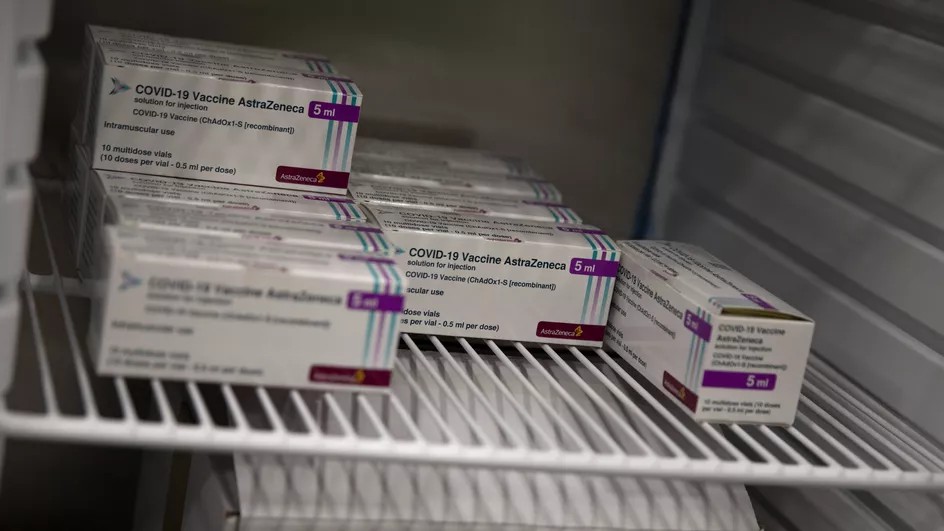Des boîtes de doses du vaccin AstraZeneca dans un centre de vaccination à Anvers (Belgique), où son utilisation n'est pas suspendue, le 16 mars 2021.