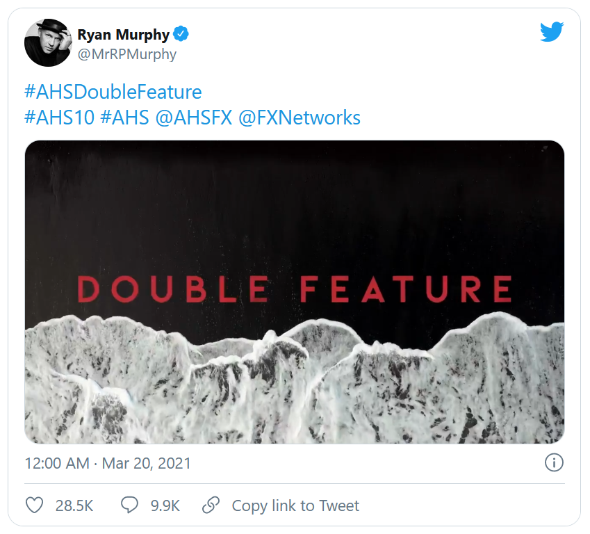 Mais grâce à un petit teaser posté sur son compte Twitter, Murphy a donc annoncé que la saison 10 d'AHS s'intitulera Double Feature. Mais il ne s'est pas arrêté là puisqu'il nous explique que pour cette saison, le public n'aura pas le droit à une seule, mais à deux histoires avec "une côté mer, une côté sable...".