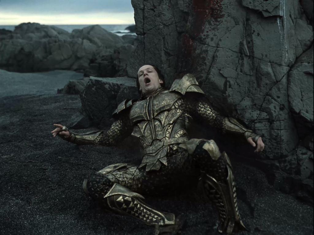 Cette référence intervient dans la deuxième partie du film lorsque Steppenwolf interroge un Atlante afin de retrouver l'une des trois boîtes mères dissimulée quelque part dans l'Atlantis. Après que ce dernier ait courageusement refusé de parler, Steppenwolf le blesse grièvement en le jetant violemment sur l'un des rochers de la plage. Malgré son état de demi-conscience, l'Atlante refuse toujours de renseigner l'emplacement de la boîte en affirmant qu'il ne trahirait jamais son peuple.