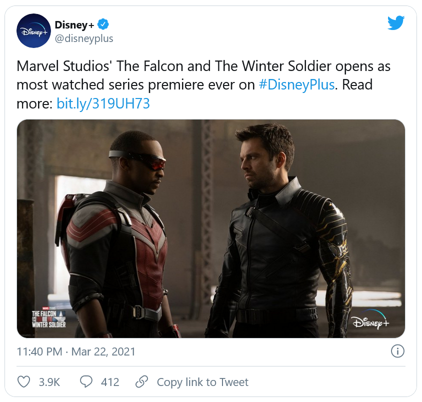 Le service de diffusion Disney+ a annoncé que Falcon et le Soldat de l'Hiver est la série qui a effectué le meilleur démarrage de toute la plateforme. Aucun premier épisode de série n'a été autant regardé, sur Disney+, que le premier épisode de Falcon et le Soldat de l'Hiver, ce qui constitue une excellente nouvelle pour la plateforme, qui compte bien continuer sur sa folle lancée.