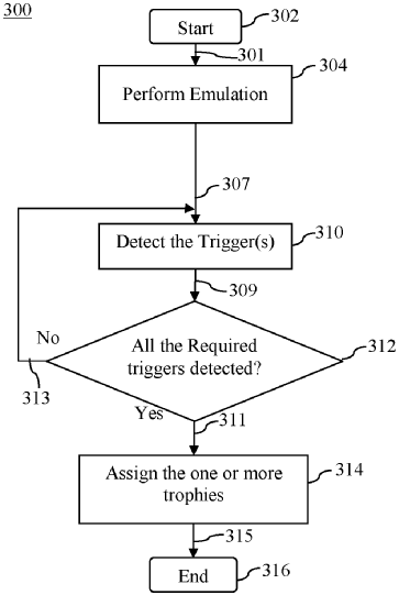 Nous vous en parlions l'année dernière, la rétrocompatibilité vers les jeux des générations antérieures à la PS4 a été démentie officiellement. Malgré tout, cela n'a pas empêché les internautes de spéculer sur l'affirmation inverse, à la suite de la publication d'un brevet de Sony ce jeudi 18 mars 2021. Intitulé "Method and Apparatus for Awarding Trophies" - que l'on pourrait traduire par : "Méthodes et Dispositifs pour les Trophées Récompenses" il paraît assez peu pertinent à première vue. A l'exception d'un détail : il s'agit des trophées relatifs aux jeux émulés uniquement ! Il paraît peu probable que Sony ait recours à l'émulation pour d'autre jeux que les jeux estampillés "legacy", qui correspondent précisément aux jeux de PS1, PS2 et PS3. Ci-dessous, un schéma explicatif.