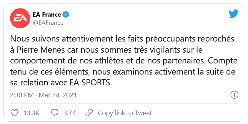 Sur Twitter, bon nombre d'internautes ont demandé à ce que la collaboration entre le géant du jeu vidéo et le journaliste se termine ici. Reste à connaître la décision que prendra prochainement l'éditeur. Quoiqu'il en soit, des internautes ont déjà pensé à sa succession en réclamant l'arrivée d'une journaliste sportive à la place de Ménès. Une requête progressiste qui pourrait bien trouver ses adeptes, mais également ses détracteurs.