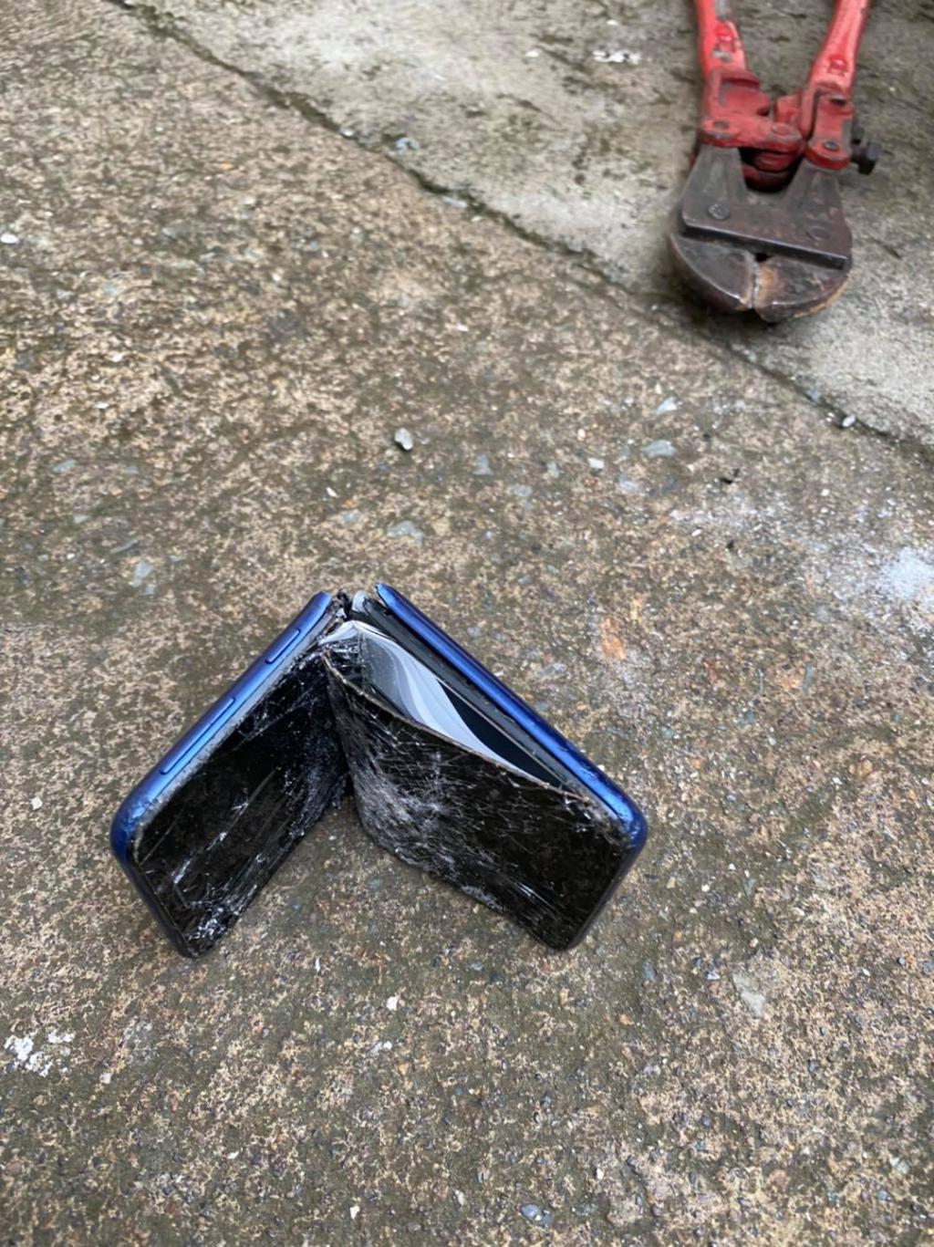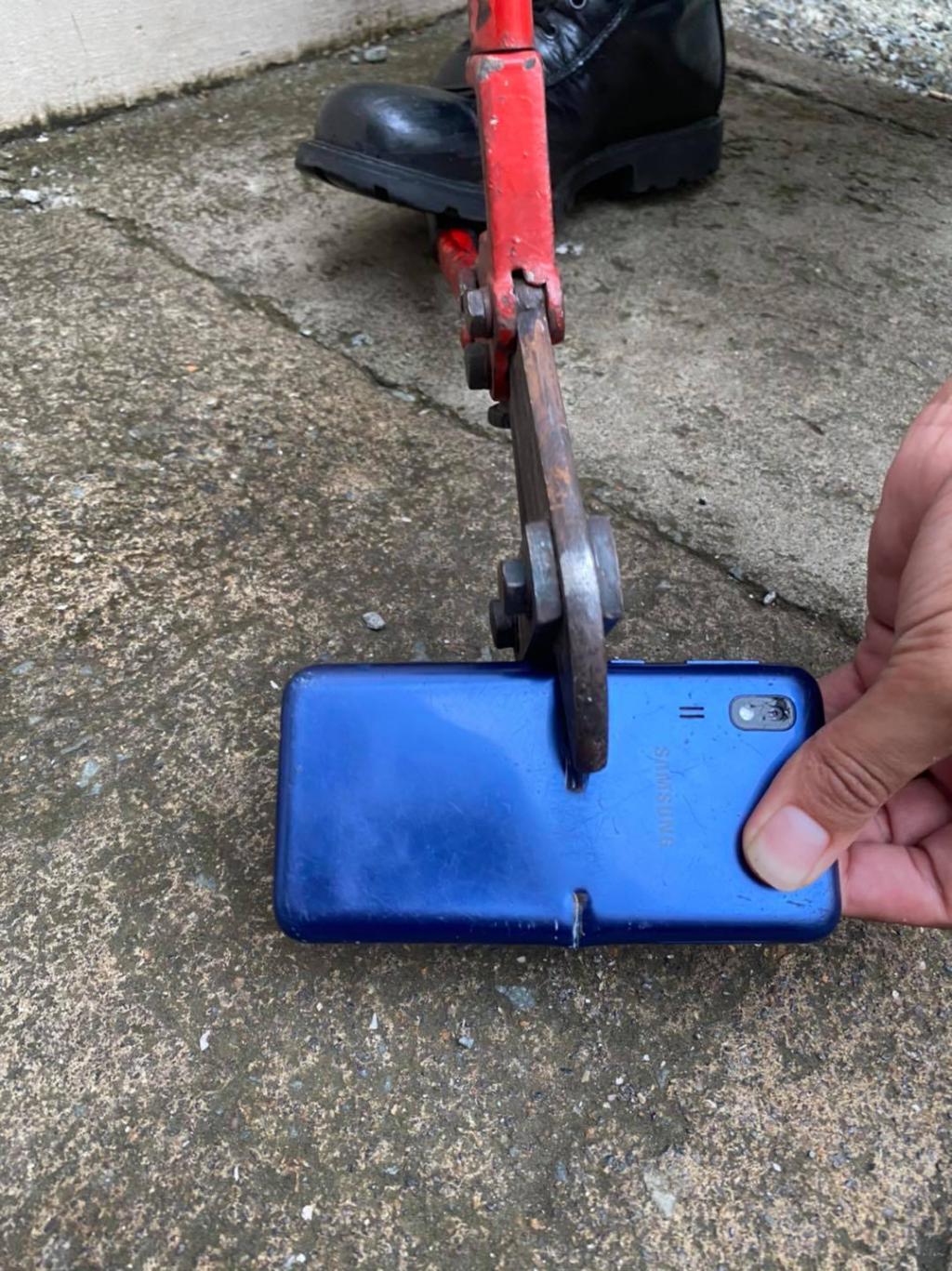 Mais ce qui a fait beaucoup parler sur les réseaux sociaux c'est la décision de justice qui a annoncé que le téléphone de l'accusé devait... être détruit ! Et ça n'a pas tardé comme le prouvent les photos partagées par la police.