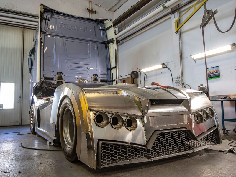 Initialement prévu pour célébrer le 50e anniversaire du V8 Scania en 2019, le projet a subi plusieurs reports successifs à cause notamment de la pandémie. « J'ai le sentiment que cela pourrait être ma dernière pièce majeure, confie Svempa. Cela ne veut pas dire que je vais définitivement prendre ma retraite maintenant, mais c'est peut-être le dernier show truck pour lequel j'aurai supervisé personnellement tout le travail de personnalisation de la carrosserie, de l'intérieur et du moteur. Et c'est pourquoi ce camion doit laisser tout le monde sans voix. »