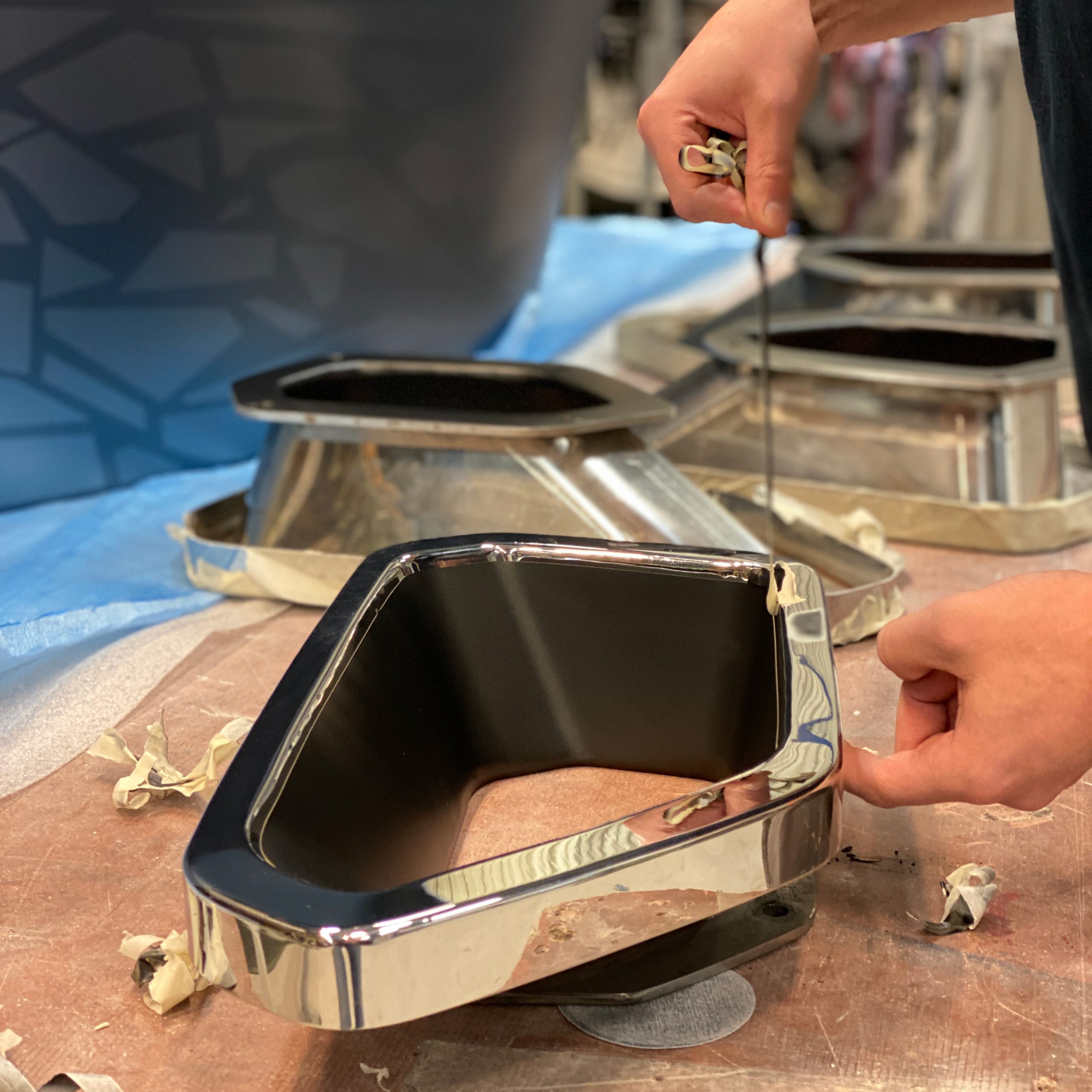 Pour la peinture, le préparateur suédois a fait appel aux experts de l'atelier Billackeringen i Mjölby. Une visite dans une usine aux Pays-Bas fut nécessaire, afin de déterminer la combinaison de couleurs exacte : du bleu complété par des accents orange et noir et un motif qui imite la glace brisée. Sa réalisation a demandé pas moins de 1 200 heures de main d'œuvre, 150 litres de peinture dans sept teintes différentes, ainsi que 18 couches de laque transparente. Au départ, Svempa n'était pas convaincu par la finition mate, mais a changé d'avis au fil du temps.