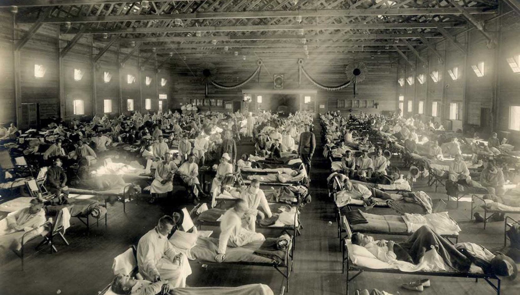Les premiers cas officiels de grippe espagnole ont été enregistrés en 1918 au camp Funston de l'armée américaine, au Kansas, où cette salle d'urgence a accueilli tous les malades.