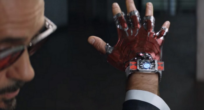 Souvenez-vous, dans Iron Man 3, Tony se fait capturer par Aldrich Killian. Pour tenter de s'échapper des griffes de son ravisseur il doit appeler son armure depuis la cabane de Harley et pouvoir se sortir de cette situation. Mais force est de constater que le temps que son armure arrive, il est vulnérable. Pour ne plus se retrouver dans une telle situation, dans Civil War on peut voir qu'il a ajouté un nano blaster à sa montre qui lui permet de pouvoir se défendre en toutes circonstances.