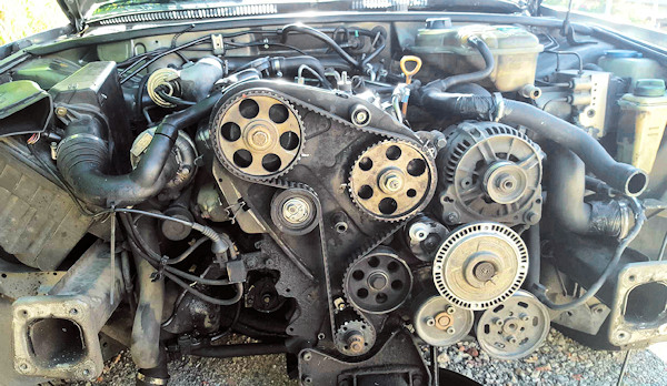 Mais il y a aussi un autre mécanisme du même acabit situé juste à coté de votre distribution, il s'agit de la courroie accessoire qui fonctionne aussi avec des galets et des poulies. D'ailleurs, un débutant ne verrait pas grande différences entre la distribution du moteur et celle des accessoires.