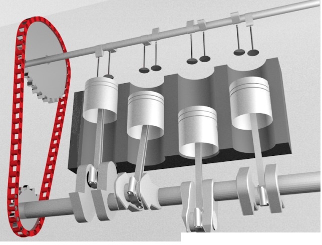 Certains moteurs n'utilisent pas de courroie pour la distribution mais une chaîne (d'autres les deux en même temps ... Une courroie + une chaine qui synchronise deux arbres à cames). L'avantage de cette dernière est qu'elle n'a pas besoin d'être changée avant au moins 300 à 400 000 km (sauf soucis évidemment).