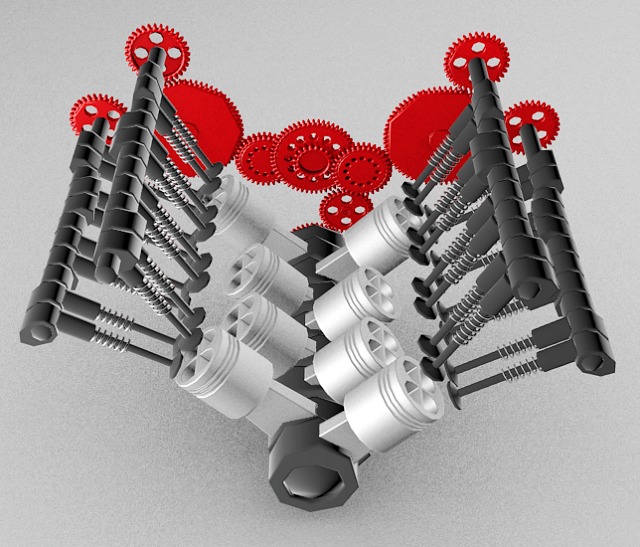 Il s'agit d'une moteur avec deux arbres à cames même si il n'y en a qu'un seul qui est visible (l'autre a disparu car il empêchait de voir l'intérieur du moteur, il s'agit en effet ici d'une découpe).
