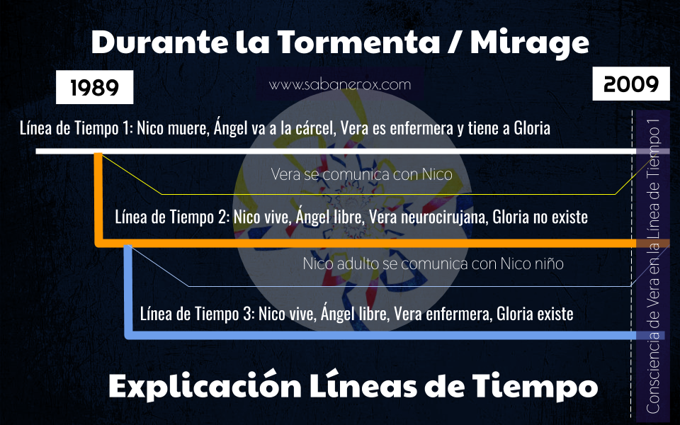 Lorsque la chronologie 2 est créée , les événements que nous avons vus dans la chronologie 1 changent. Vera parvient à empêcher Nico de se rendre chez Ángel et quand il sort dans la rue, il évite d'être écrasé par l'ambulance. Nico pense dans un premier temps qu'il a rêvé d'avoir communiqué avec elle, la femme du futur, qui vit dans la même maison. Mais ensuite, il prouve qu'elle a dit la vérité, quand la foudre frappe son école et que les cours sont suspendus.