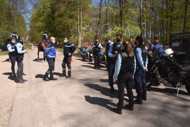 Il est 15 heures, sous la direction du capitaine Boque, qui commande l'escadron départemental de sécurité routière. Une vingtaine de gendarmes sont réunis pour le briefing. Le poste à cheval de L'Isle-Adam est également sur le terrain, avec deux cavaliers et un militaire qui va opérer en 4 x 4 au cœur du massif forestier.