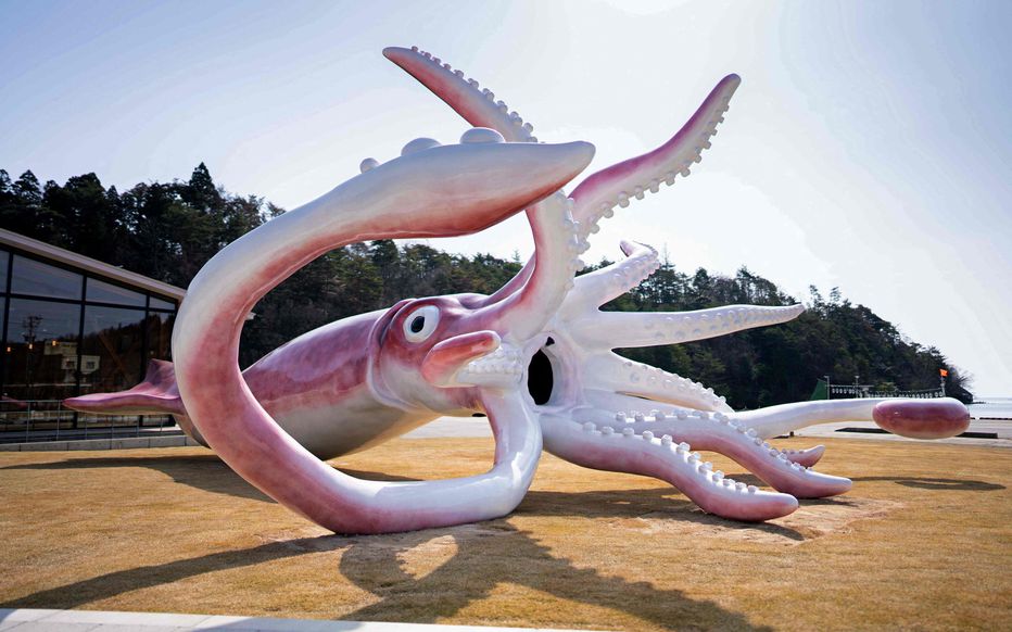 Le calamar rose, long de 13 m et dont les tentacules se déploient comme pour attraper une proie, a été inauguré en mars par la localité côtière de Noto (centre du Japon), en signe de fierté pour ses prises de pêche. Le monument a coûté environ 27 millions de yens (206 000 euros) et a été financé en grande partie par une subvention nationale destinée à aider les municipalités affectées financièrement par la pandémie, comme les destinations touristiques.