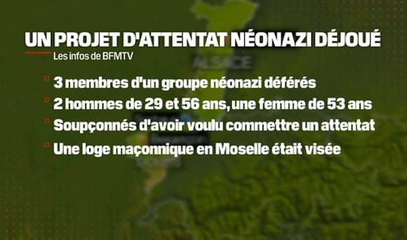 DES MEMBRES D'UN GROUPE NÉONAZI INTERPELLÉS ALORS QU'ILS PRÉPARAIENT UN ATTENTAT CONTRE UNE LOGE MAÇONNIQUE