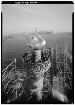 La torche est la première pièce achevée par les ouvriers, en 1876, dix ans avant l'inauguration de la Statue de la Liberté.