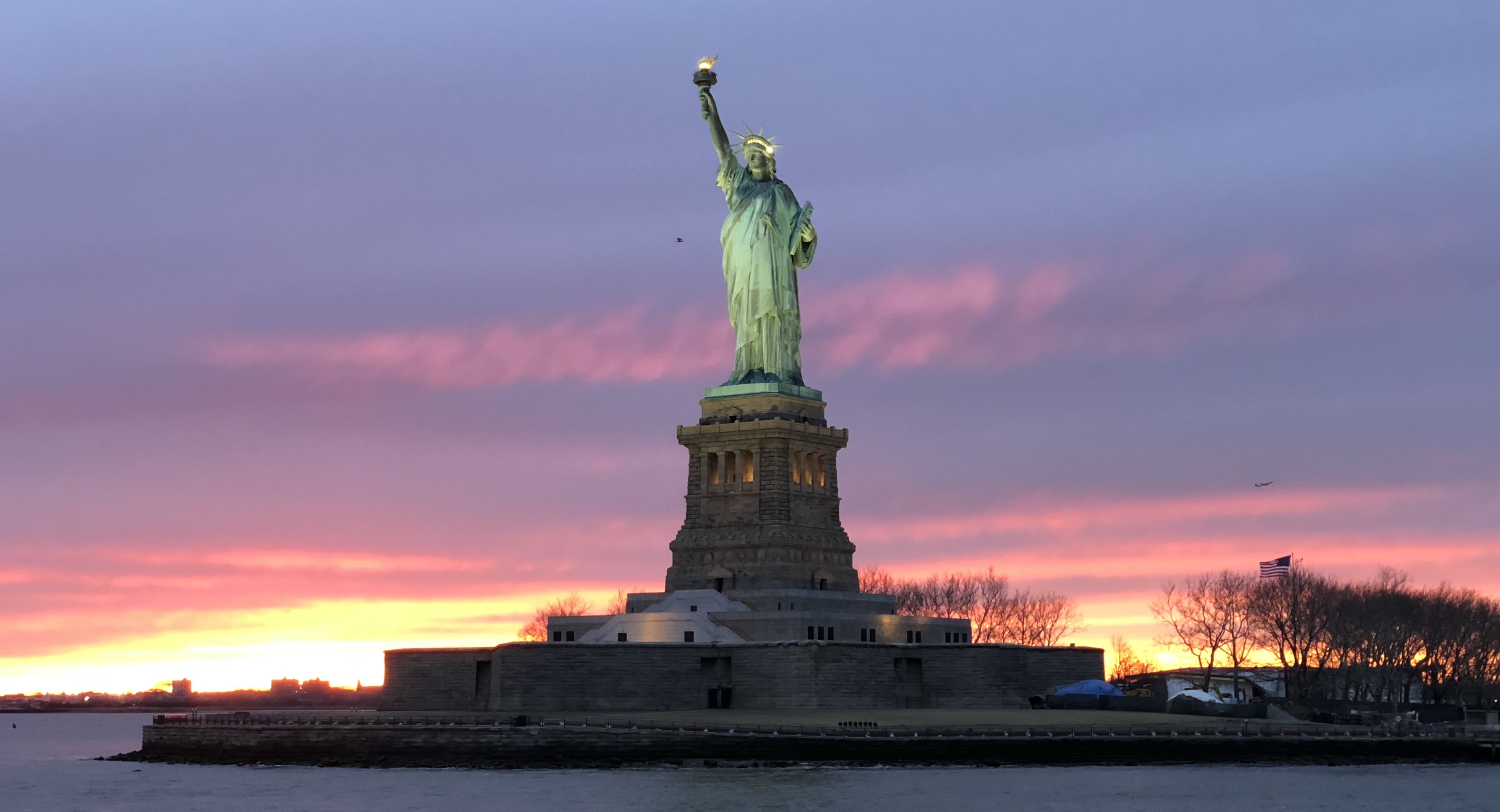 Si le projet n'a pas abouti, l'Alsacien souhaite alors utiliser ses croquis pour concevoir un équivalent new-yorkais. En 1871, il s'exile aux Etats-Unis, fuyant Colmar, sa ville natale occupée par les armées prussiennes de Bismarck, et la Commune, dont il réprouve la violence. Dans ses bagages, il emporte deux modèles de statues et des lettres d'introduction d'Edouard de Laboulaye.