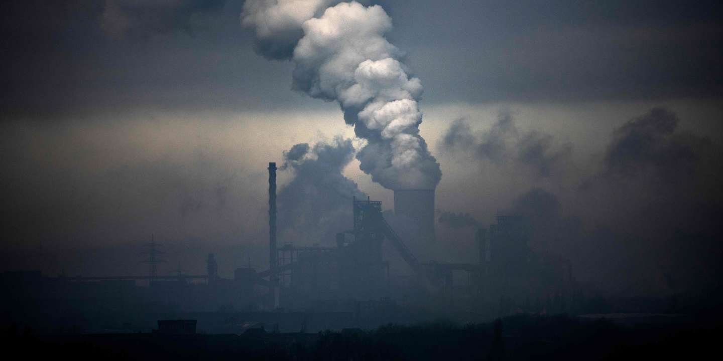 Une usine du conglomérat industriel allemand ThyssenKrupp (au premier plan) et une centrale électrique au charbon à Duisburg, dans l'ouest de l'Allemagne.