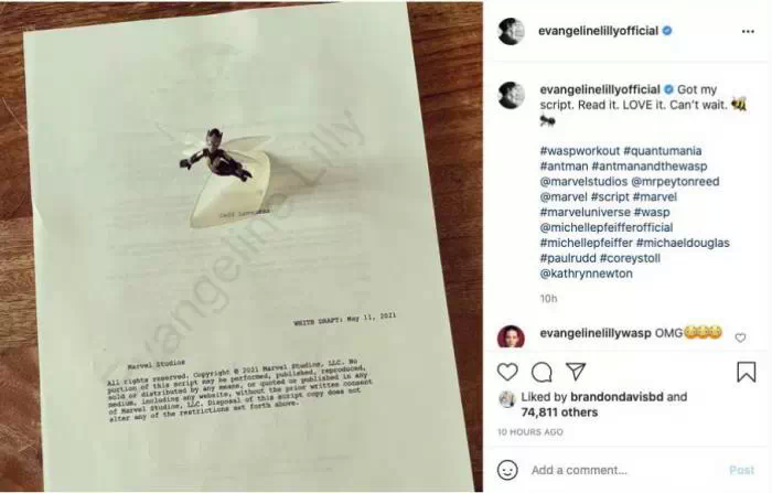 C'est dans un post Instagram de Evangeline Lilly que s'est produit le drame. En effet, l'actrice qui interprète la Guêpe, sans doute impatiente de commencer le tournage, a publié une photo de la première page du script dudit film. Jusque-là, rien d'impressionnant, il s'agit d'une simple feuille blanche avec les mentions légales de Marvel Studio écrites dessus.