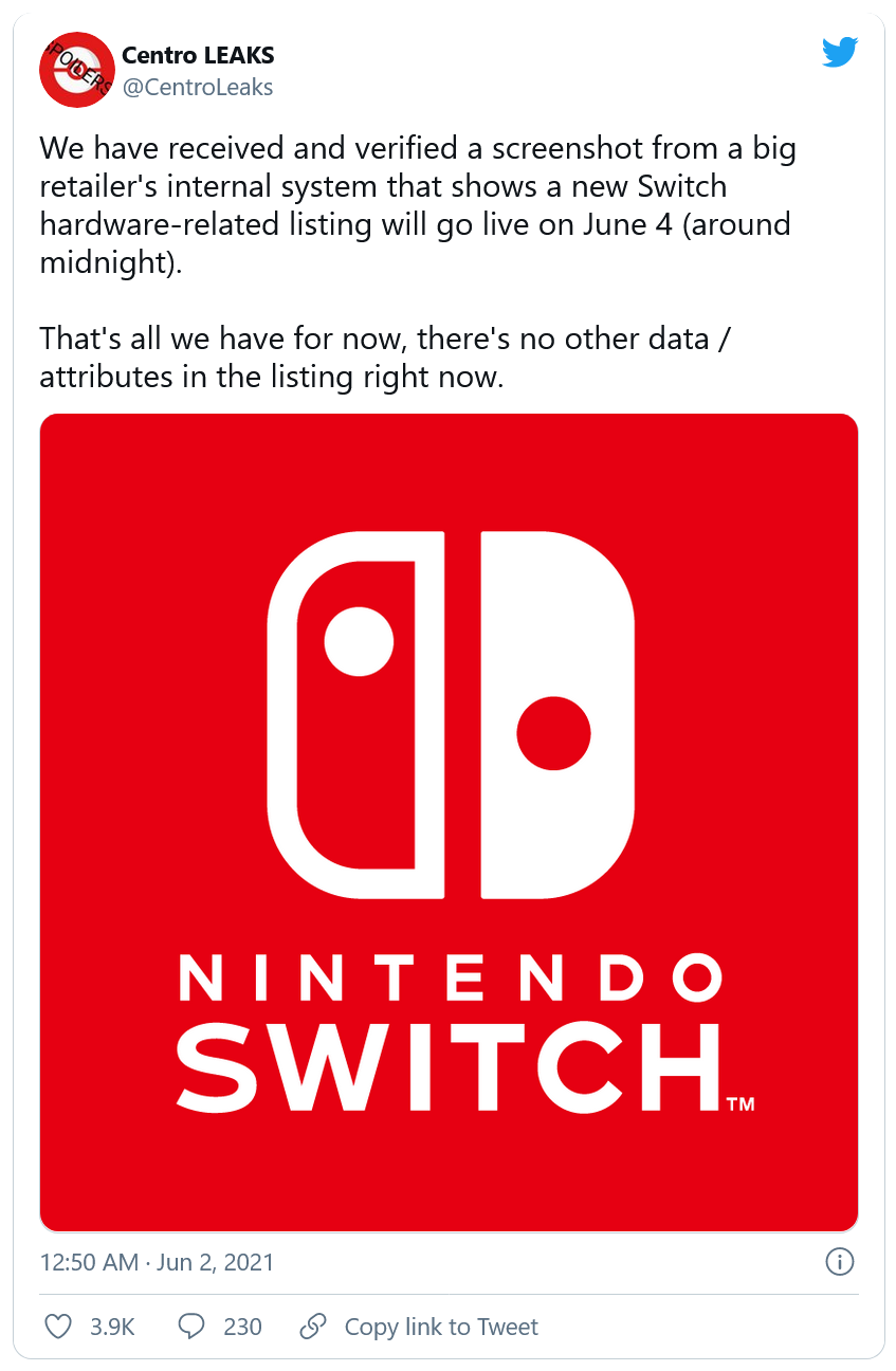Nous avons reçu et vérifié une capture d'écran du système interne d'un grand détaillant qui montre qu'une nouvelle liste liée au matériel Switch sera mise en ligne le 4 juin (vers minuit). C'est tout ce que nous avons pour le moment, il n'y a pas d'autres données/attributs dans la liste pour le moment.
