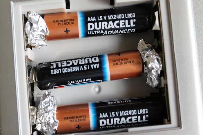 Si vous vous retrouvez perdus et sans batterie ou alors avec une batterie de taille trop petite, Il est possible d'occuper l'espace vide avec du papier d'aluminium, ce qui aura pour effet de conduire l'électricité. Encore faut-il en avoir sur soi !