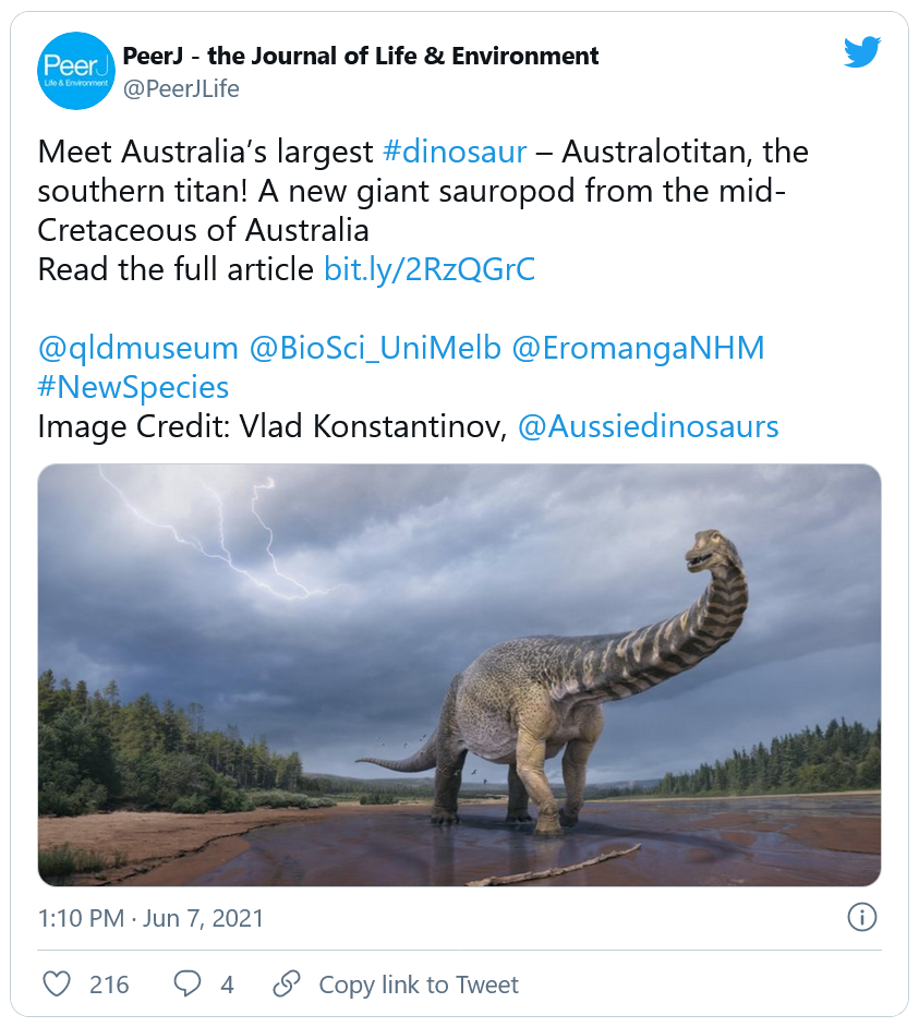 Autre information dévoilée par les analyses : le dinosaure aurait vécu dans une période comprises entre 92 et 96 millions d'années avant notre ère, au milieu de trois autres espèces de sauropodes : Diamantinasaurus matildae, Wintonotitan wattsi et Savannasaurus elliottorum.